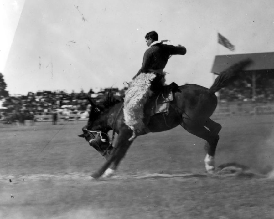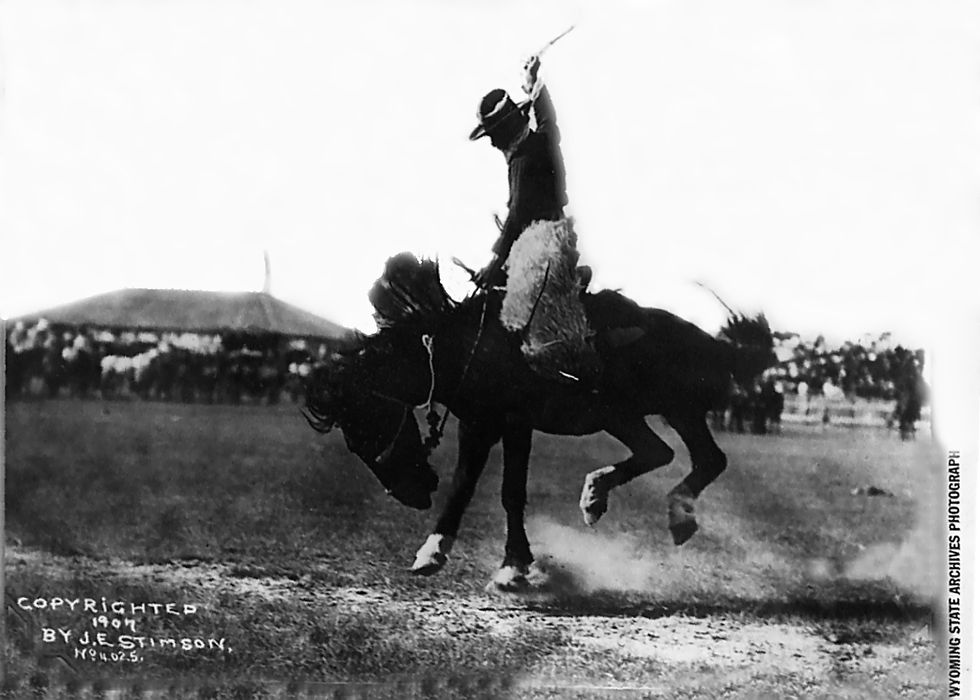 Voted the “Worst Bucking Horse of the Year” at Cheyenne Frontier Days™ in 1906 and 1907 Steamboat was truly a legendary bucking horse in the rodeo arena. From 1901 to 1914 Steamboat became famous for his ability to throw riders although contrary to popular belief there were cowboys who managed to ride to time. Clayton Danks took the championship at Cheyenne Frontier Days™ in 1907 on Steamboat. Owned by the famous Irwin Brothers Steamboat made his last appearance at a show in Salt Lake City in 1914. Receiving a serious wire cut from a corral where horses had spooked Steamboat contracted blood poisoning and had to be put down.