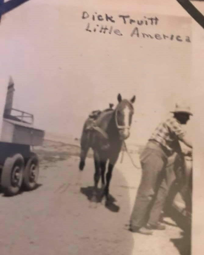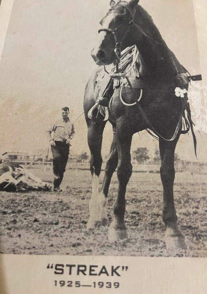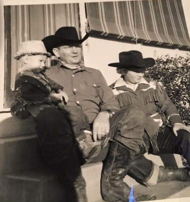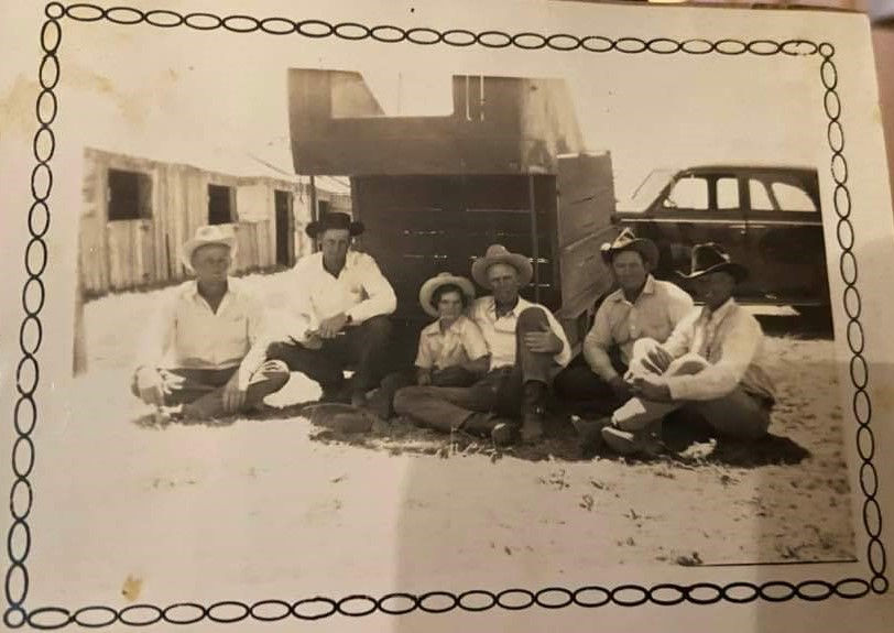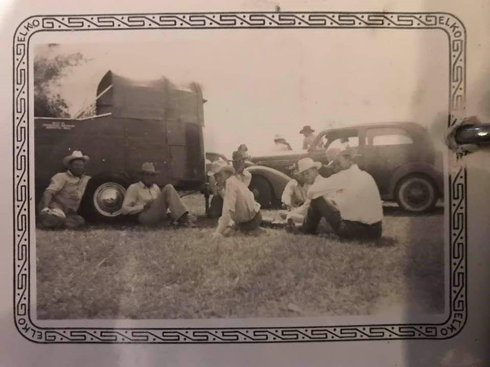 Cheyenne was a favorite for Dick and his family, for many years his wife Juanita and their kids, Dixie and Richard, would accompany him to “The Daddy”. On one particular occasion, Juanita made him buy her a chow-chow dog with his winnings. On Dick’s tombstone is a picture of him competing in 1948 at the Cheyenne Frontier Days in Steer Wrestling with the words “His family and his friends were his world.”
