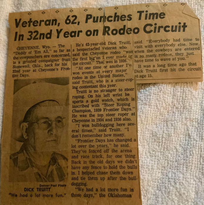 Dick was born in Rockwall, TX, on September 6, 1904. His family moved to Oklahoma in 1906. He was a cowboy through and through not only as a contestant but as a cattleman too.