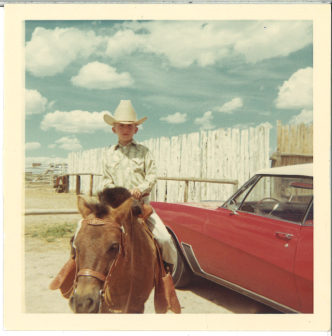 Tad and his stepfather Bud tried their luck as contestants at CFD during the 1973 show. Following an unexpected breeding of their mare at their boarding facility, they had a mare and colt. After encouragement from Dave Carmichael and Larry Rezack, the two entered Misty, the mare and Kodak, the colt in the George Guy Memorial Dinner Bell Derby or the Mare and Colt Race. They raced the pair at every rodeo that year winning third place at one of the shows. It was exciting, but Tad knew he was not cut out to be a rodeo cowboy.